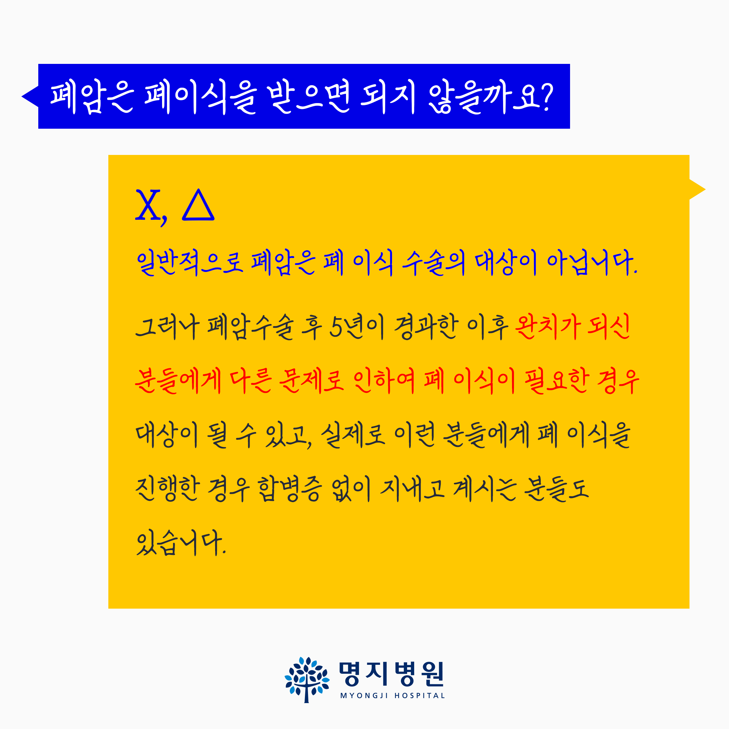 그러나 폐암수술 후 5년이 경과한 이후 완치가 되신 분들에게 다른 문제로 인하여 폐 이식이 필요한 경우 대상이 될 수 있고, 실제로 이런 분들에게 폐 이식을 진행한 경우 합병증 없이 지내고 계시는 분들도 있습니다.