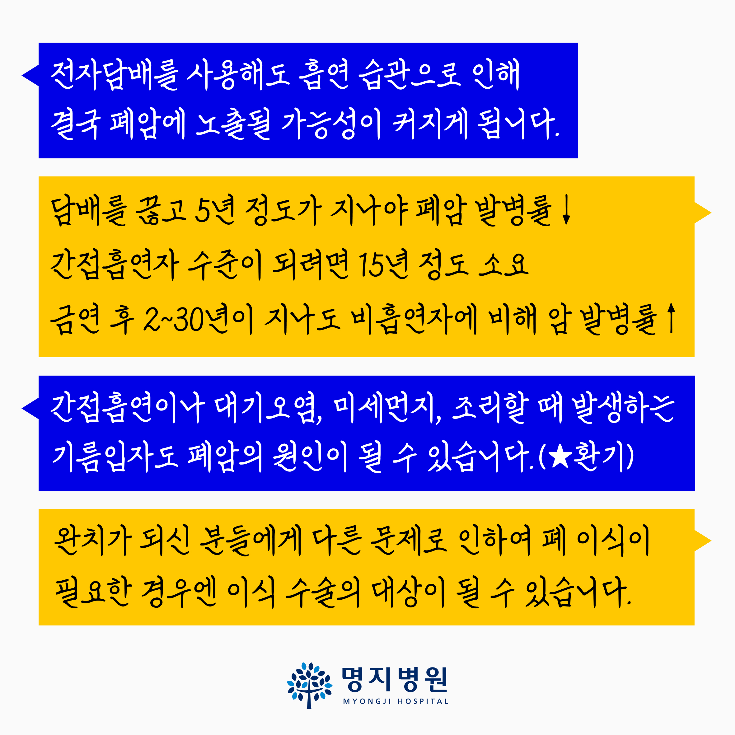 깊은 폐까지 해로운 물질이 침착하게 되어 폐암에 노출될 가능성이 커지게 됩니다.